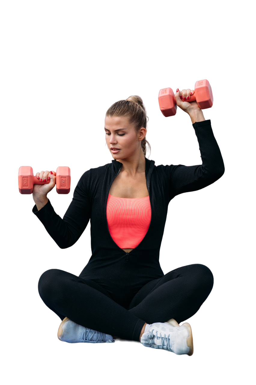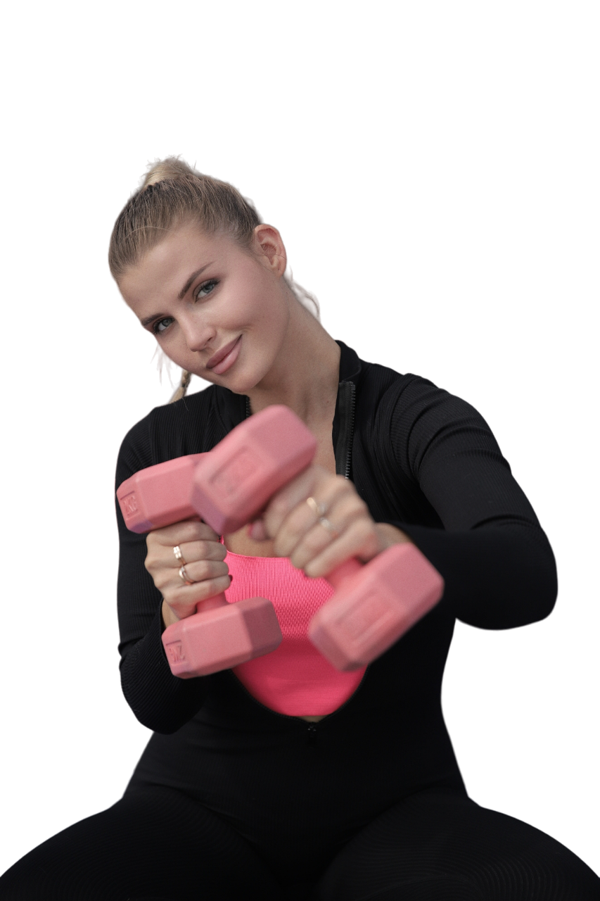 Отлично, если есть коврик для фитнеса и гантели. Если нет — можно их заменить пледом или ковром и бутылками с водой